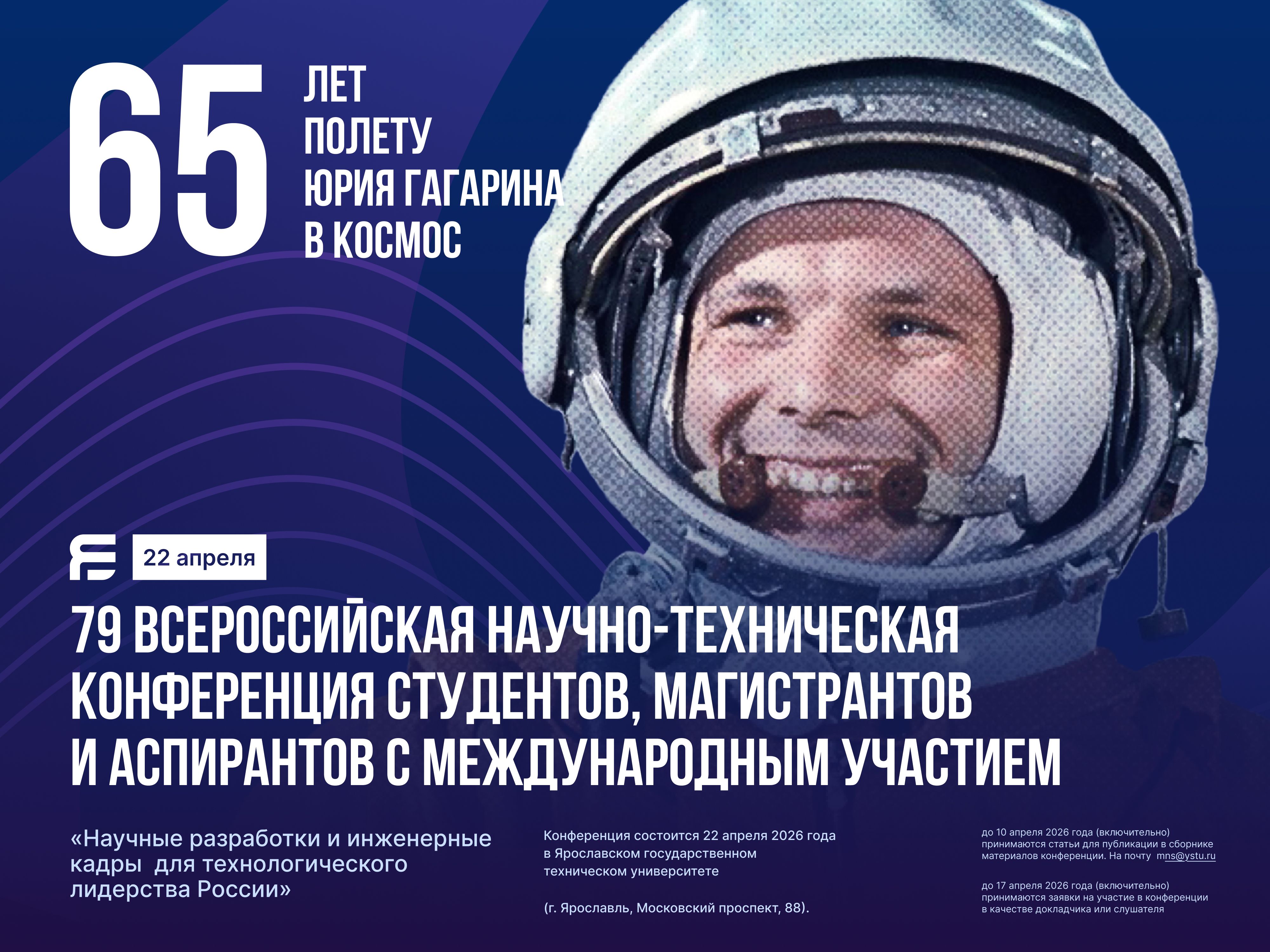 Конференция состоится 22 апреля 2026 года в Ярославском государственном техническом университете (г. Ярославль, Московский проспект, 88).