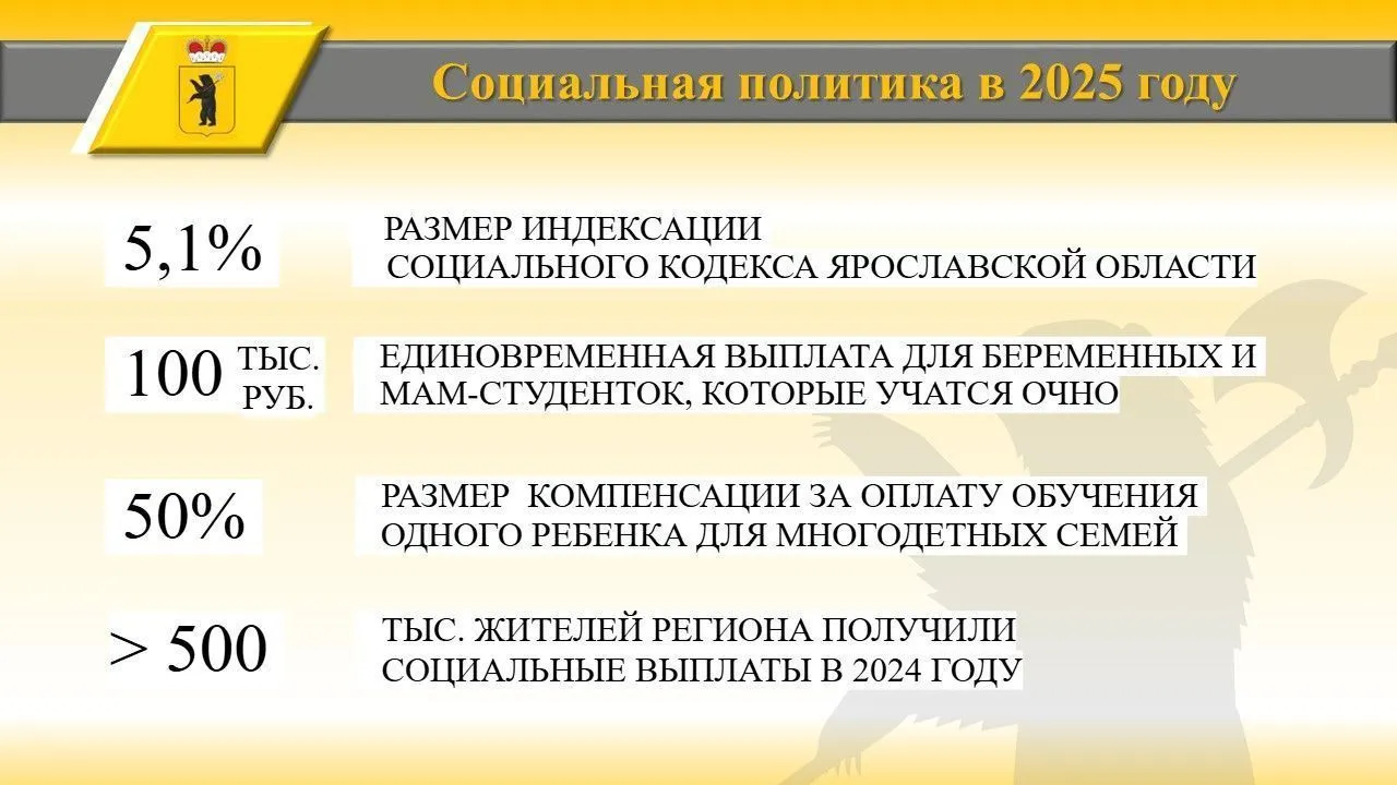 "Новые меры социальной поддержки получат в этом году отдельные категории семей региона. В России благодаря инициативе нашего Президента Владимира Владимировича Путина стартовал новый нацпроект «Семья», который включает в себя дополнительные эффективные механизмы поддержки. Прежде всего они направлены на помощь родителям с детьми и решение демографических задач, заботу и уход за пожилыми жителями. На уровне Правительства Ярославской области реализуются в регионе все социальные инициативы государства", — сказал губернатор Ярославской области Михаил Евраев.