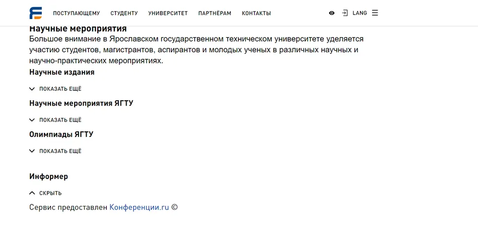 После этого выпадает список зарубежных, международных, региональных конференций, симпозиумов и т.д. с конкретными датами приема материалов и проведения мероприятия, по результатам которого высланные статьи индексируются в той или иной базе данных (eLibrary, ВАК, Scopus/ Web of Science).