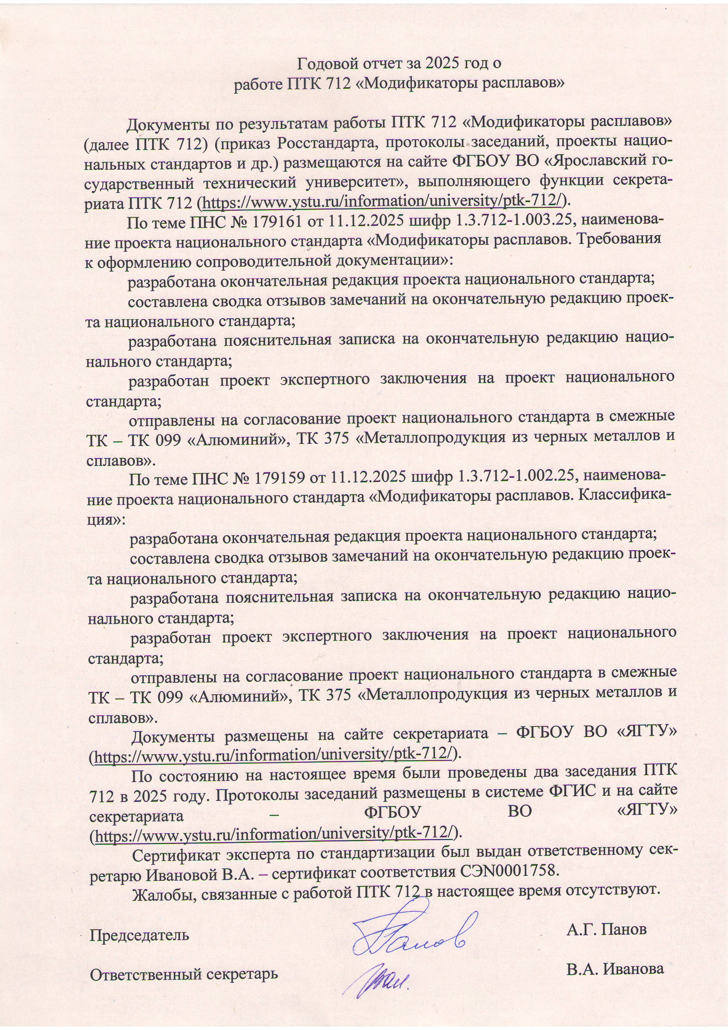 Проектный технический комитет по стандартизации №712 «Модификаторы расплавов» (ПТК 712)