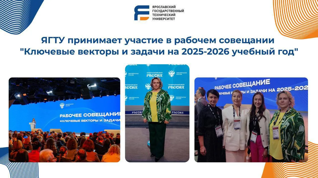 Проректор по образовательной деятельности и воспитательной работе Ярославского государственного технического университета Голкина Виктория принимает участие в масштабном рабочем совещании в самом сердце страны – Национальном центре «Россия»! Цель - синхронизация ключевых задач и смыслов на 2025/26 учебный год!