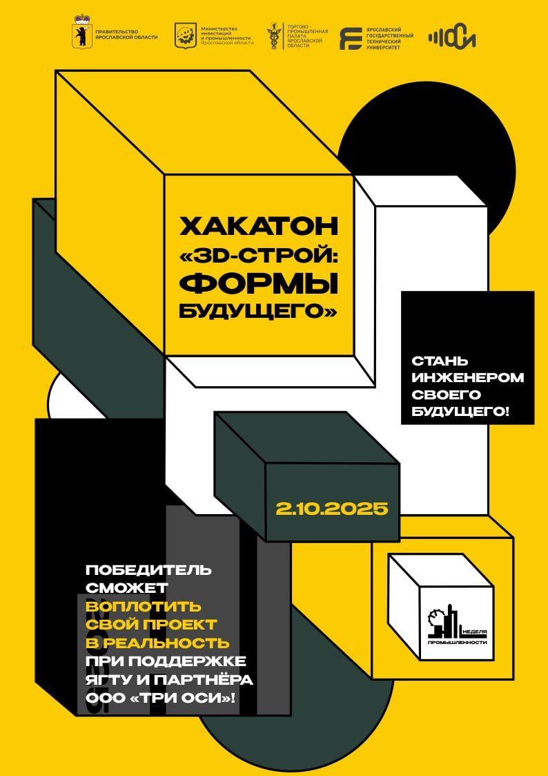 В преддверии масштабной Недели промышленности Ярославской области, которая в этом году будет совмещена с Неделей открытых дверей вузов региона, стартует промышленный хакатон «3D-Строй: формы будущего». В его рамках молодежь разработает и представит проекты для обустройства городской среды. Участие могут принять школьники, студенты и аспиранты в возрасте до 27 лет в составе команд от трех до пяти человек. Заявки принимают до 22 сентября.